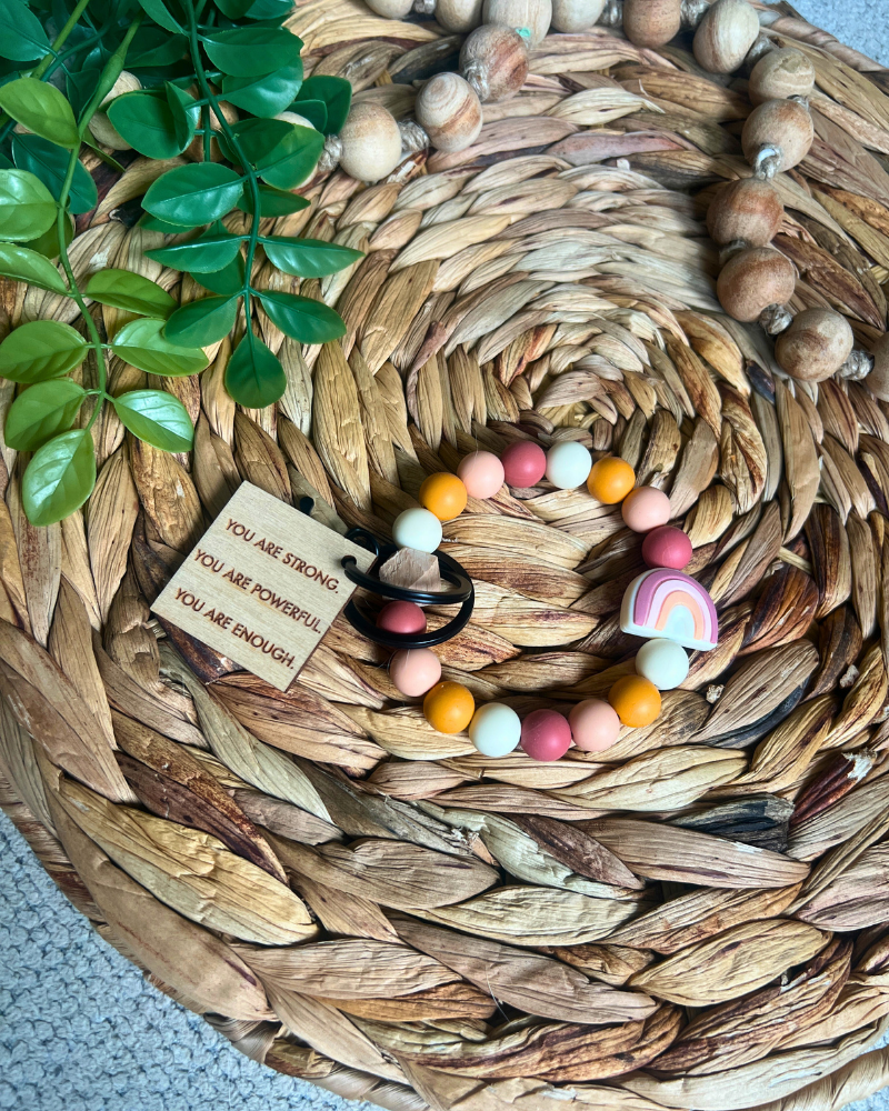 Plus, every keychain, wristlet, and lanyard comes with a wooden affirmation tag for added inspiration. Keep your essentials close and your mindset positive with this multipurpose accessory.