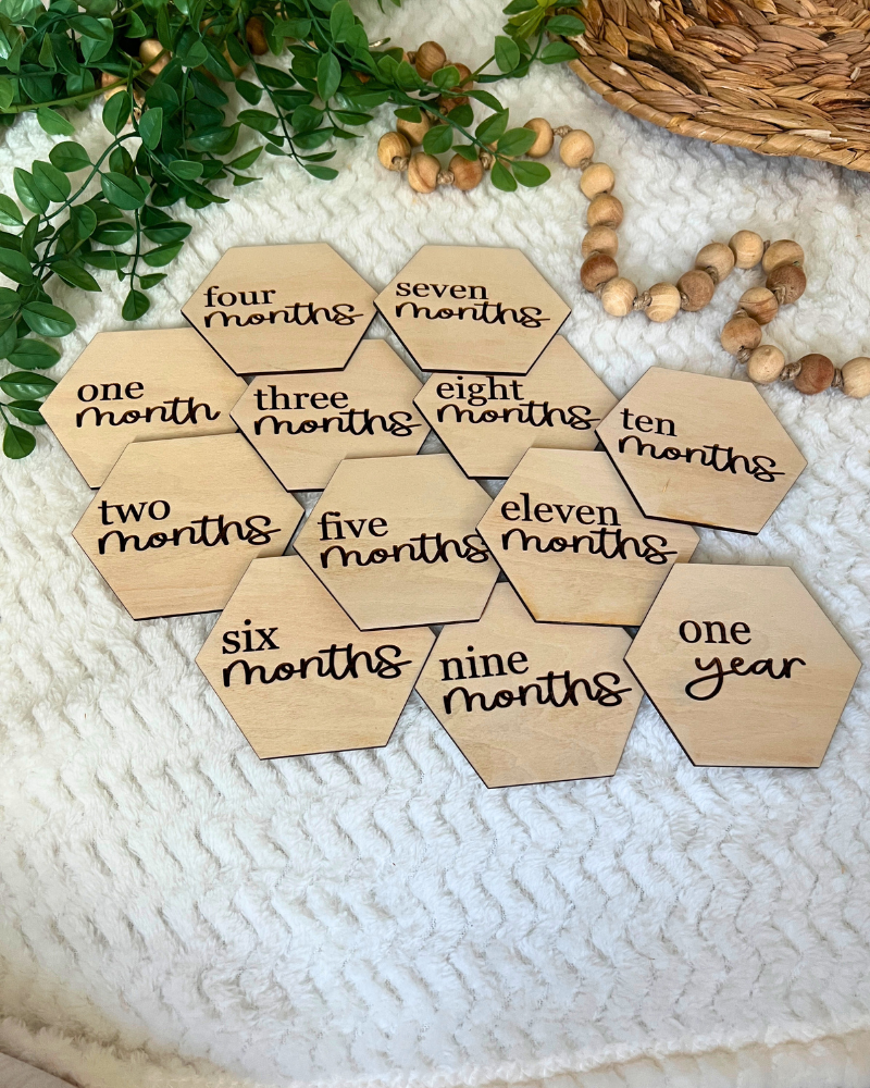Celebrate every precious moment in your baby's first year with our Simply Sweet Hex Milestones. Crafted from high-quality wood, these charming hexagon-shaped milestones are designed to capture and commemorate each month of your little one’s journey. Perfect for baby announcements, photoshoots, or as a beautiful nursery decoration, these milestones combine functionality with a touch of elegance.