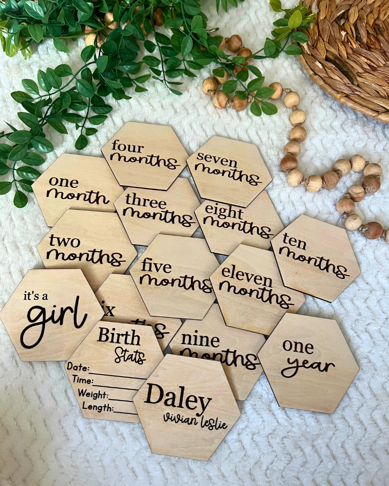 Capture the magic of your baby's first year with Simply Sweet Hex Milestones—where every month is a milestone worth celebrating!